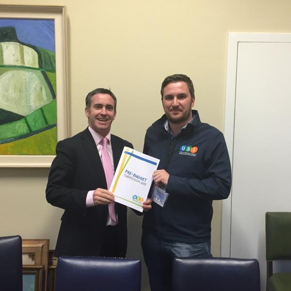 The Union of Students in Ireland and Fine Gael’s Junior Minister for Education, Damien English, met in Leinster House yesterday to discuss the student accommodation crisis and the impact the Budget will have on financially struggling students across Ireland.