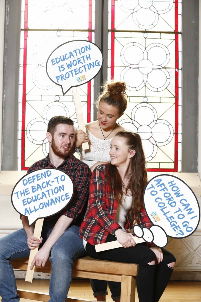 **** NO REPRODUCTION FEE **** 03/09/2014 : DUBLIN : Pictured at the Union of Students in Ireland pre-budget submission and education policy platform for the coming year was USI members Kieron Pierson, Ruth Doran and Eve O’Connor. Union of Students in Ireland calls for protection of student supports. The Union of Students in Ireland has today (Wednesday 3 September) launched its pre-budget submission and education policy platform for the coming year. At an event in Temple Bar’s Smock Alley Theatre, the national student movement outlined a wide-ranging set of budget proposals and issued an invitation to members of the Oireachtas to advocate for the improvement of students’ lives. At the heart of the organisation’s pre-budget submission is the pressing need to maintain the level of the student maintenance grant, which has come under pressure in recent years. Speaking ahead of the event, USI President Laura Harmon said: “Education is too expensive. Too many students and prospective students are worrying about whether they can afford to go to college. The level of the grant as it stands today gives opportunity to the least well-off candidates in the country to attend third level education and develop skills for life. Cutting the grant or shifting the thresholds downwards would certainly price even more students out of education – and that means pricing students out of a future.” In addition to the release of the pre-budget campaign, USI confirmed the date for a national rally for education on 8 October 2014. Picture Conor McCabe Photography.